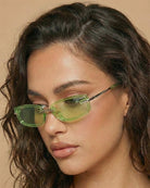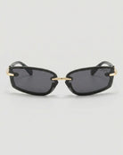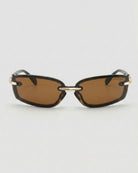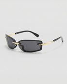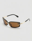 Zuri sunglasses will give your look a futuristic upgrade with its rimless wraparound design and striking cutout details. A unique structural frame extends seamlessly into sculpted nose pads, featuring an open-cut shape for a bold, modern look. Slim gold metal temples add a sleek contrast, making these unisex shades a true statement piece.