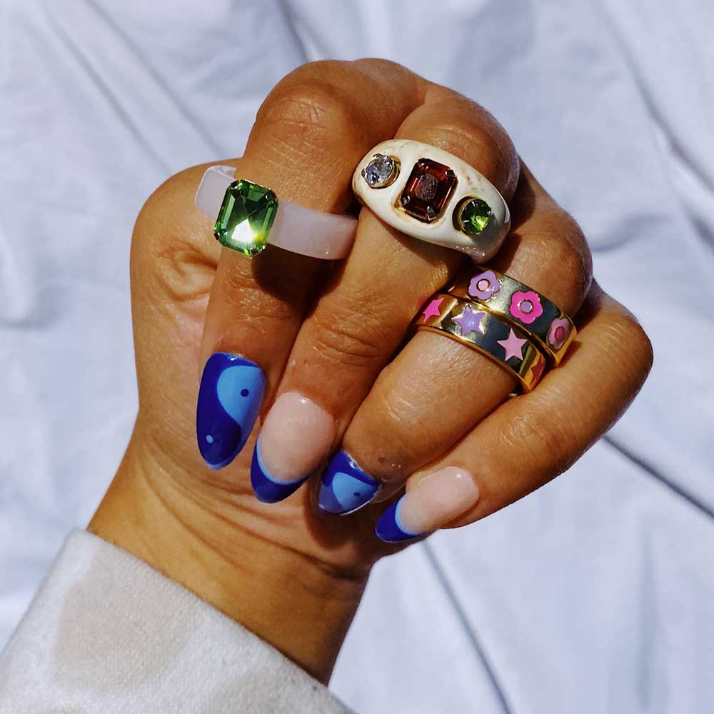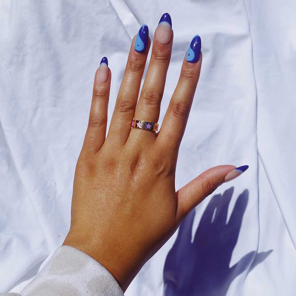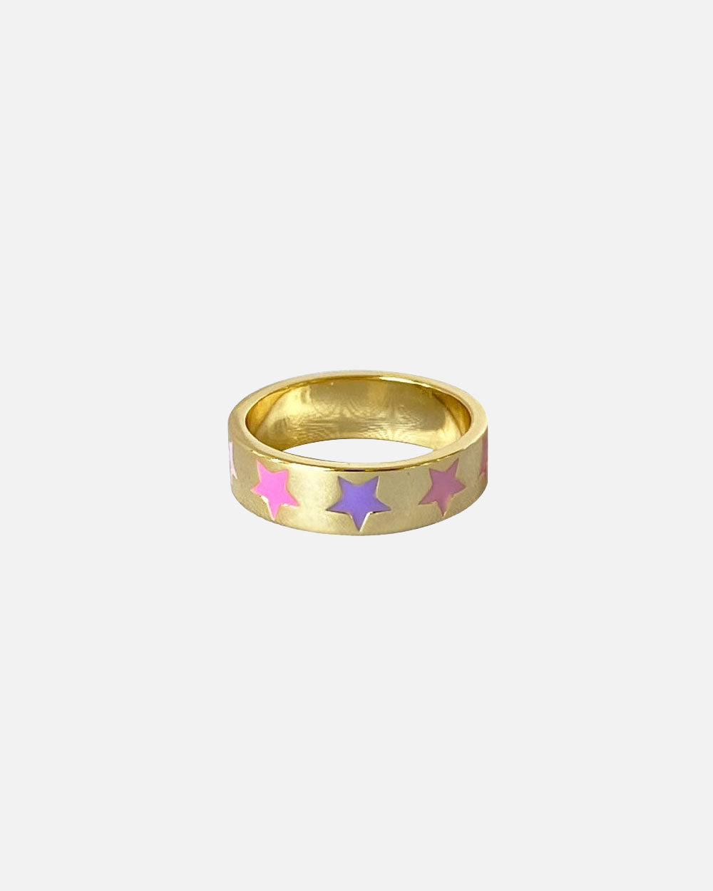 A little Y2K, a little magical. The Stella Ring features bold pink and purple enamel stars set against a gold-plated band. Stack it, gift it, or wear it solo for a playful pop.