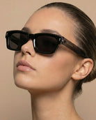 Cole unisex polarized sunglasses combine clean lines with subtle detailing for a modern, elevated look. The rectangular frame is accented with small metallic arrow-shaped details at the front, adding just the right amount of edge without overpowering your style.
