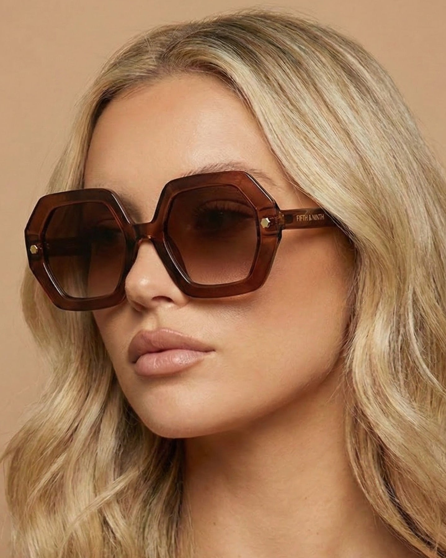 Haven brings high-fashion energy to your everyday look. With an oversized geometric frame and slim, lightweight temples, these polarized sunglasses strike the perfect balance between bold and wearable. Metallic gold accents at the front and ear tips add a luxe touch that catches the light just right.