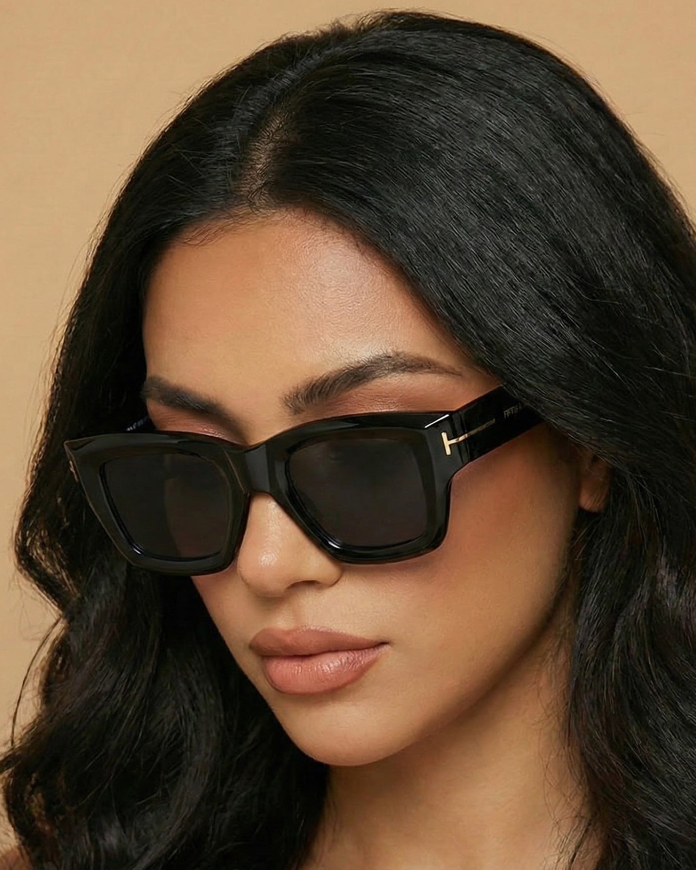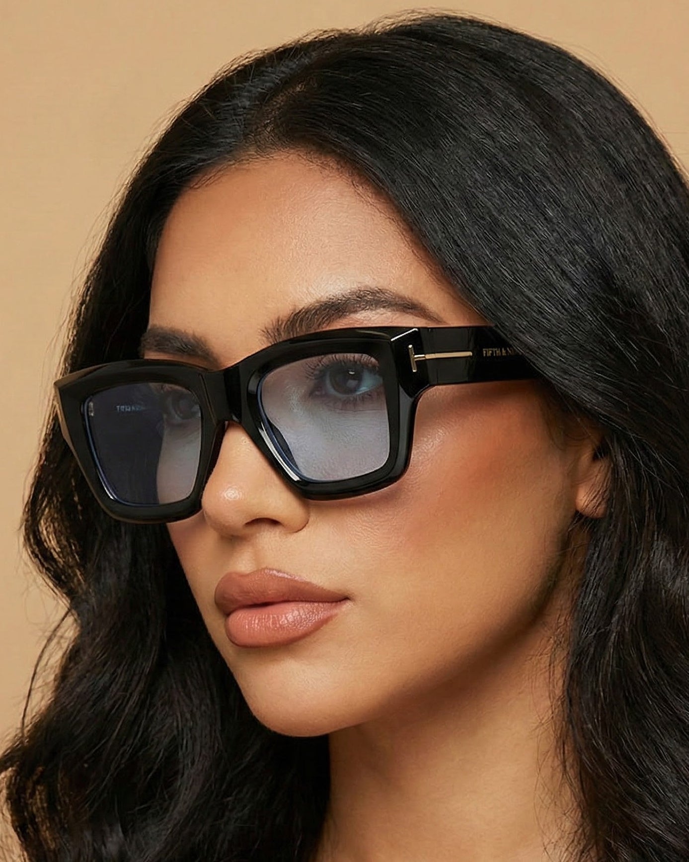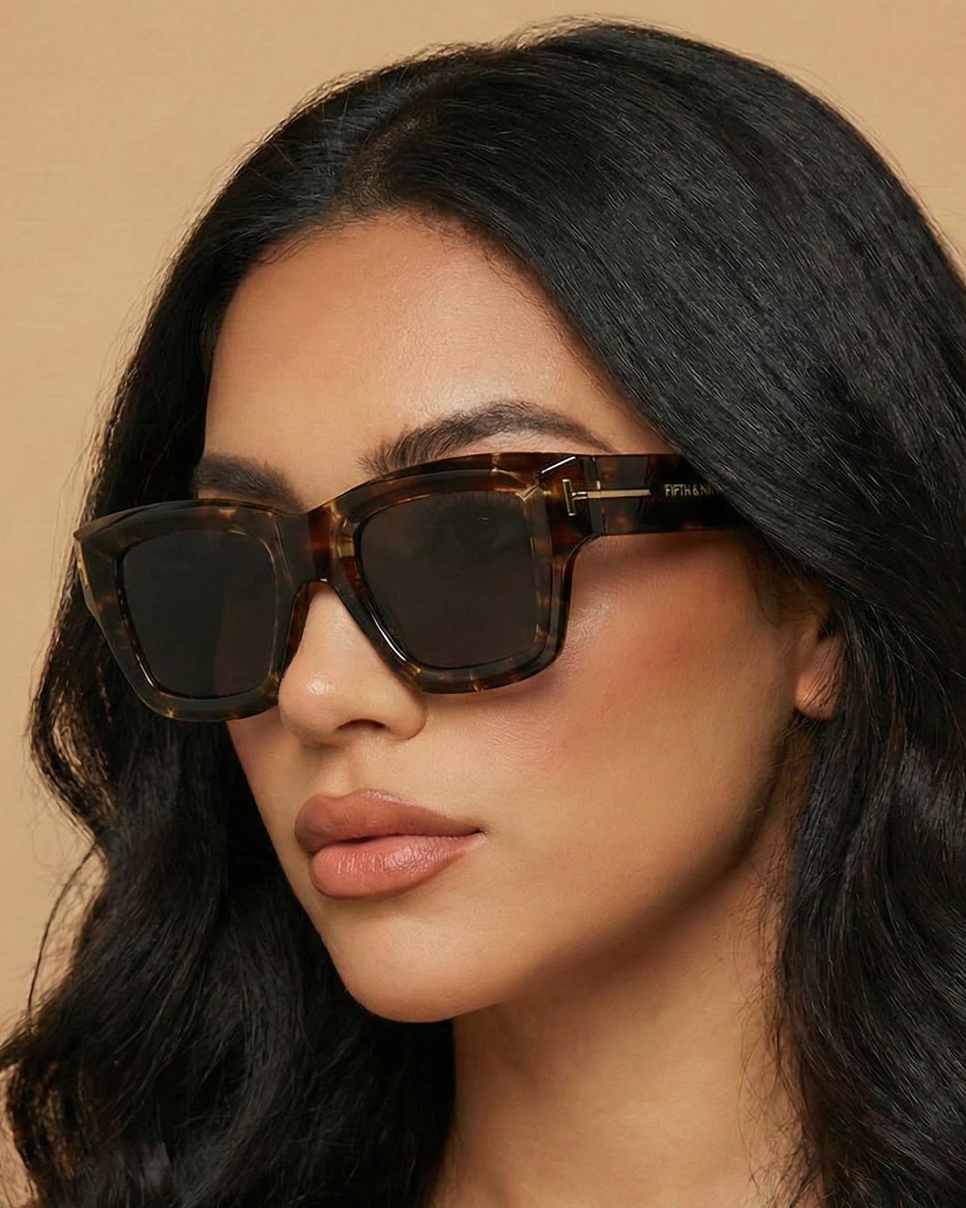Bold square frame with sleek gold metal detailing