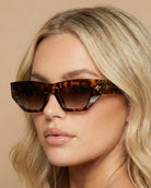 Logan polarized sunglasses feature a unique geometric frame and squared off temples with raised accent pieces. Sophisticated and effortlessly on-trend, Logan is available in classic black and torte.